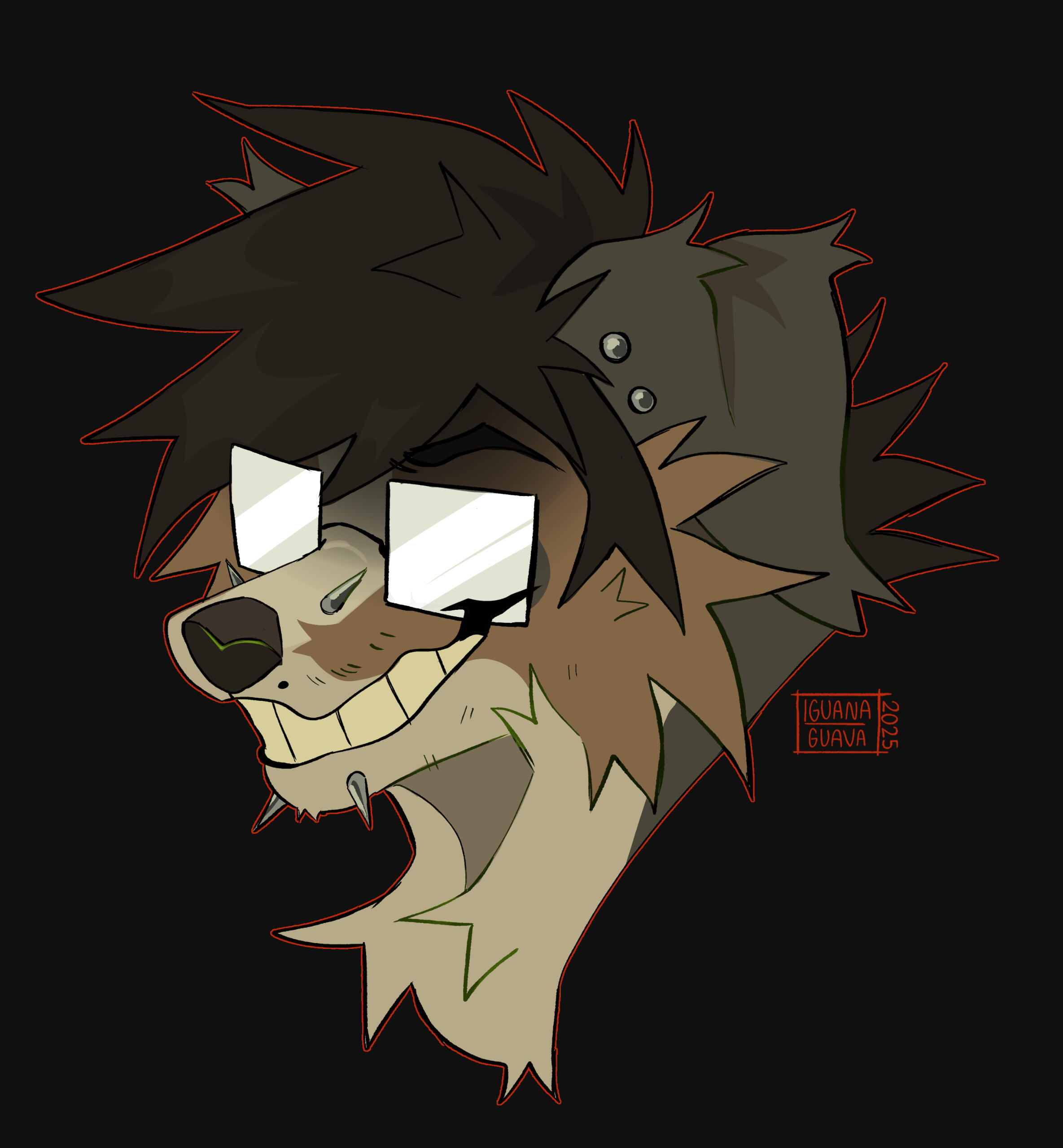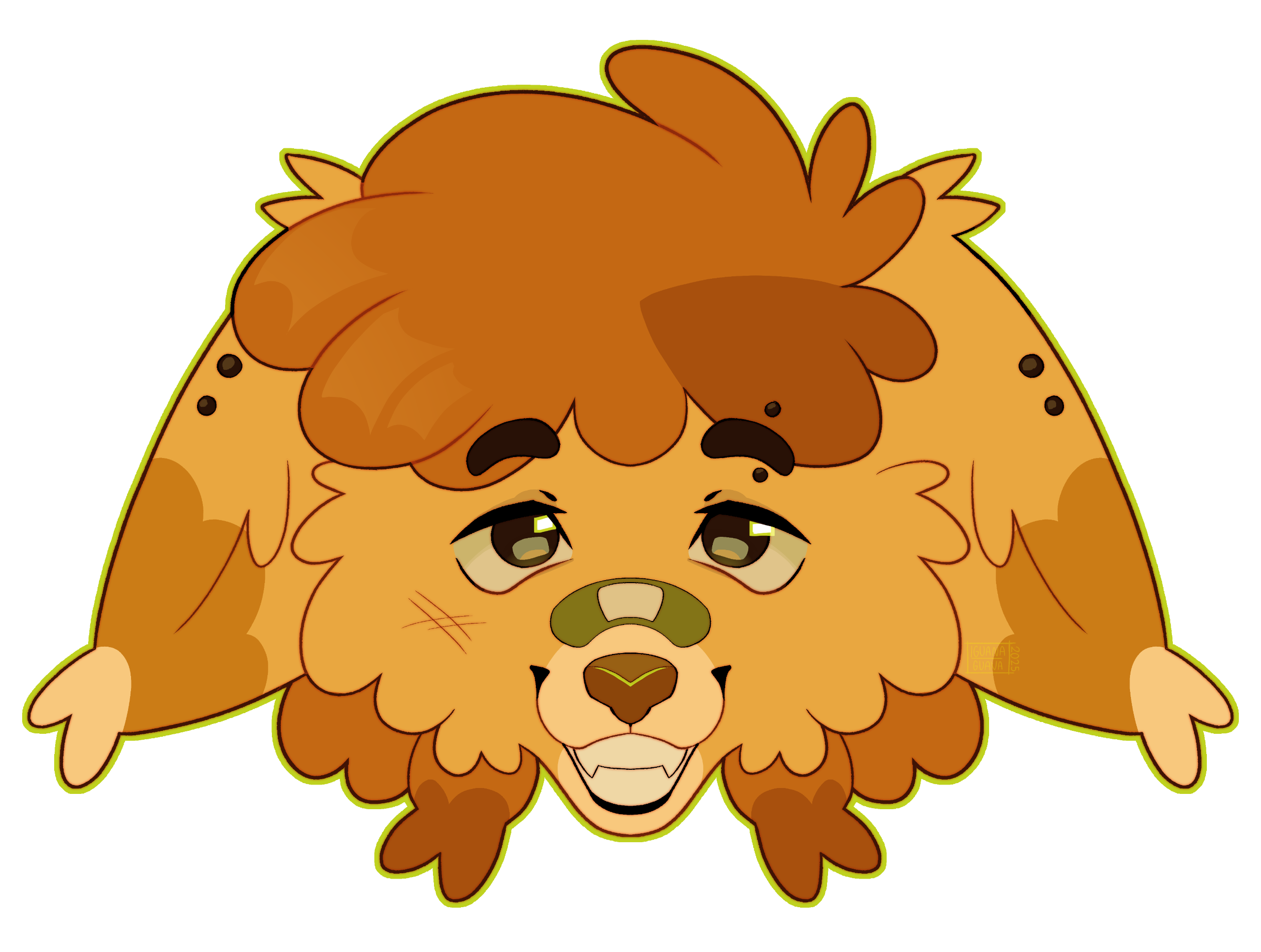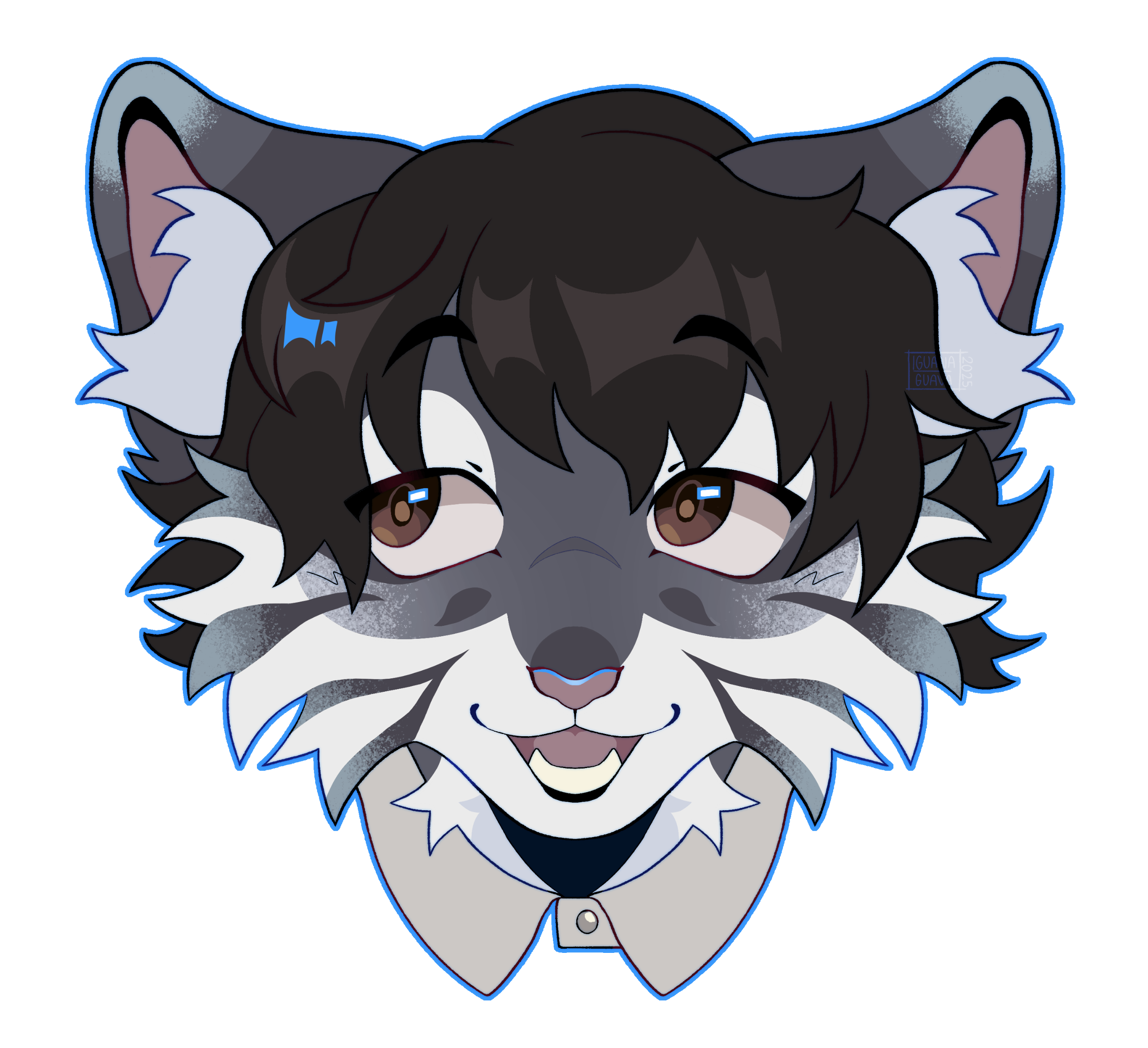 a headshot of your character facing forwards with a transparent background and a light outline. will not include the neck, just the head. (collars, necklaces, etc will not be visible unless specifically requested!)